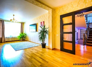 Comision cumparator 0% ASCENDENT IMOBILIARE Va prezinta in REPREZENTARE IMOBILIARA, o vila somptuoasa, pozitionata excelent in zona centrala, la o distanta de 15 minute de Brasov, in Municipiul Sacele. Va invitam sa experimentati o vizionare initiala, din locatia unde va aflati, chiar acum, prin accesarea filmului de prezentare: Film prezentare: https: www.youtube.com watch?v=WL11ZGja9Sk Aceasta proprietate impresioneaza prin farmecul sau unic, intampinandu-va cu o deschidere larga, intrarea fiind orientata spre gradina din fata vilei, frumos decorata cu flori, ghivece si pitici de gradina. O nota impunatoare o aduce si mica fantana arteziana care completeaza peisajul. Remarcabil este designul atent al vilei, finisajele de calitate superioara si materialele folosite, confortul modern oferit de spatiile luminoase si generoase, precum si liniile elegante ce reflecta tuseul personal al proprietarilor. Vila, dispusa pe D+P+M, ofera o suprafata utila de 355 mp si urmatoarea configuratie: Demisol 2 garaje (42 mp in total), hol, spalatorie calcatorie camera de sport, camera tehnica, spatiu de depozitare tip crama (120 mp) Parter Living spatios de 35 mp, bucatarie inchisa cu zona de luat masa extrem de luminoasa, camara incapatoare, hol generos, baie, spatiu de depozitare (123 mp) Mansarda Etaj 3 dormitoare, 3 bai, 2 dressinguri, hol si 2 terase deschise cu vedere mixta (112 mp) Un aspect de mentionat este inaltimea generoasa a mansardei, construita ca un etaj complet, cu inaltimi variabile de la 2,20 m la 3,97 m, oferind o senzatie de spatiu amplu si confortabil. Inaltimea spatiilor interioare este de: demisol 2,62 m, parter 2,92 m, iar mansarda intre 2,20 si 3,97 m. Accesul intre demisol si mansarda se face pe o scara ampla si eleganta, imbracata in detalii de fier forjat si iluminata de un candelabru din cristal. Amintim: Peretii exteriori ai demisolului sunt din beton armat de 30 cm si zidarie portanta de 30 cm, cu plansee din beton armat de 20 cm grosime, oferind o structura solida si durabila. In spatele casei gasiti o mica sera, iar mansarda dispune de doua terase mari cu vedere mixta, una spre fata si alta spre spatele casei, oferind oportunitati excelente de relaxare in aer liber. Rezidenta dispune de sistem de supraveghere video, doua garaje cu telecomanda, terasa acoperita la intrare, toate pe un teren generos de 985 mp. Infrastructura locala apreciabila, avand in proximitate punctele de interes local: statii de transport in comun, supermarketuri precum Carrefour si Mega Image, benzinarie, banci, scoli, gradinite si parcuri verzi, perfecte pentru plimbari de seara. Va astept sa descoperim impreuna povestea acestei minunate proprietati cu stil modern si cozy. Invitam colegii la colaborare! Consilieri specializati pe oferta: doamna Gilda Georgescu Telefon WhatsApp: 0722.807.623 si domnul Nicolaie Pavel Telefon WhatsApp: 0720 500 650 Detalii, fotografii suplimentare si alte variante similare exclusive: www.ascendentimobiliare.ro