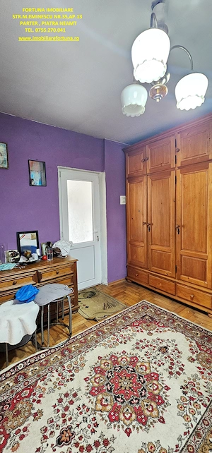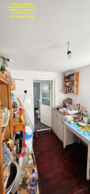 CASĂ + ANEXĂ + TEREN 6.000 MP, LA 10 MINUTE DE ORAȘ, ÎN CADRU NATURAL DE VIS, COM. GÂRCINA, 50.000 EURO UȘOR NEG Dacă îți dorești să scapi de stresul și stilul de viață agitat din mediul urban, să fii înconjurat de natură și să dai o șansă traiului liniștit, lipsit de grijile cotidiene, FORTUNA IMOBILIARE propune spre achiziție această proprietate, compusă din suprafața de 6.000 mp teren intravilan, casă bătrânească locuibilă și diverse anexe gospodărești, situată în intravilanul comunei Gârcina din județul Neamț. Casa în suprafață de 74 mp, compusă din terasă acoperită, hol, 2 camere, bucătărie și baie, este construită din cărămidă și chirpici, pe fundații din beton, acoperită cu tablă. Una dintre anexe, cu suprafața de 64 mp - o căsuță bătrânească construită din paianta, pe fundații din piatră - este compusă din 2 camere și bucătărie, iar o altă construcție (în suprafață de 39 mp) poate fi folosită ca spațiu pentru depozitarea sculelor și uneltelor gospodărești și pentru creșterea păsărilor și animăluțelor. Casa este conectată la rețeaua publică de electricitate și apă, iar încălzirea se face prin intermediul unor sobe din teracotă. Terenul are o suprafață plană, este fertil, permițând cultivarea unei varietăți de produse agricole, pomicole și viticole. Imobilul este situat între case, iar partea din spate a terenului fuzionează cu pădurea. Preț 50.000 euro Pentru o prezentare detaliată a acestui imobil, oferirea unor informații suplimentare și programarea unei vizionări, vă invităm la sediul nostru: Fortuna Imobiliare, situat pe str. M. Eminescu, nr. 35, ap. 13, parter, lângă fostul Tribunal, tel. contact 0755.270.041. Your comfort is our priority ! Oferta noastră completă o găsiți aici: