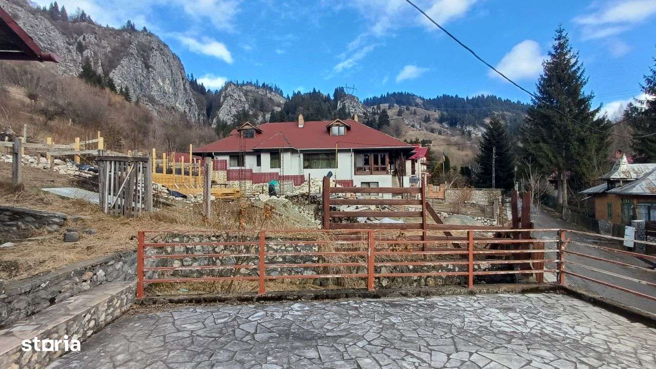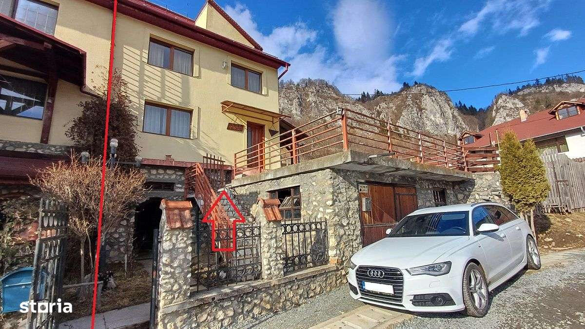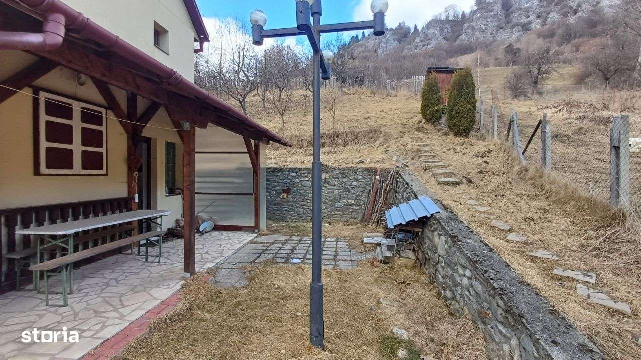 Casa de vacanta parter + etaj, constructie din piatra si lemn, suprafata utila 110 mp, teren 800 mp din care 400 mp taluz Compusa din: parter cu living, bucatarie deschisa, grup sanitar, debara, cămară Etaj cu 2 dormitoare, hol mare, 2 balcoane. Incalizire centrala + butelie gaz butan, alimentare apa, anvelopata cu polistiren. Este complet mobilata. Proprietar